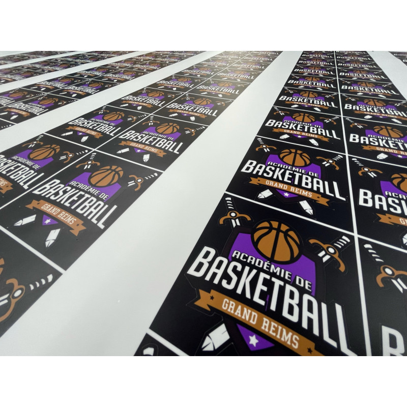 Impression numérique sur fond blanc. Découpe coins carrés (autre forme en option)